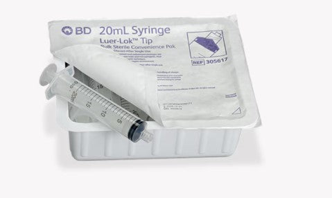 20mL Syringe, Luer-Lok Tip, Sterile Convenience Pack Tray, Case of 120 (BEC 305617)