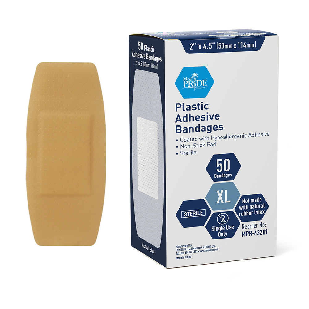 Adhesive Bandage - Plastic X-Lg. - 2" x 4.5" - Sterile - 24/50/cs.