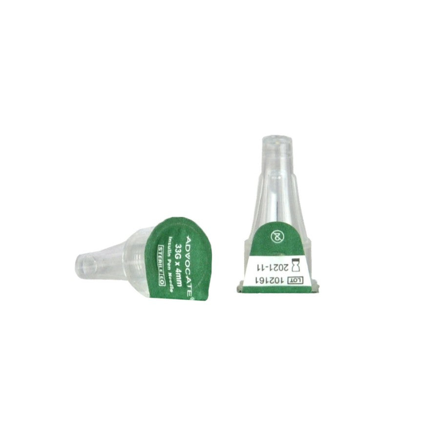 The Advocate Pen Needles are available in 5mm (31g), 8mm (31g), 12.7mm (29g), and 4mm (33g).