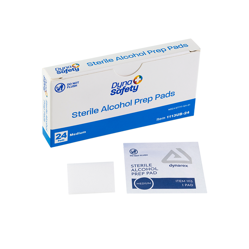 Dynarex DynaSafety Sterile Alcohol Prep Pads are designed to safely cleanse and prepare skin prior to injection or venipuncture. These premium-quality Pads are saturated with 70% isopropyl alcohol to help fight bacteria and germs and reduce the risk of contamination. These 1-ply, non-woven Prep Pads are soft and absorbent for improved effectiveness. The Pads are designed for single use and sealed in sterile pouches for optimal hygiene.
