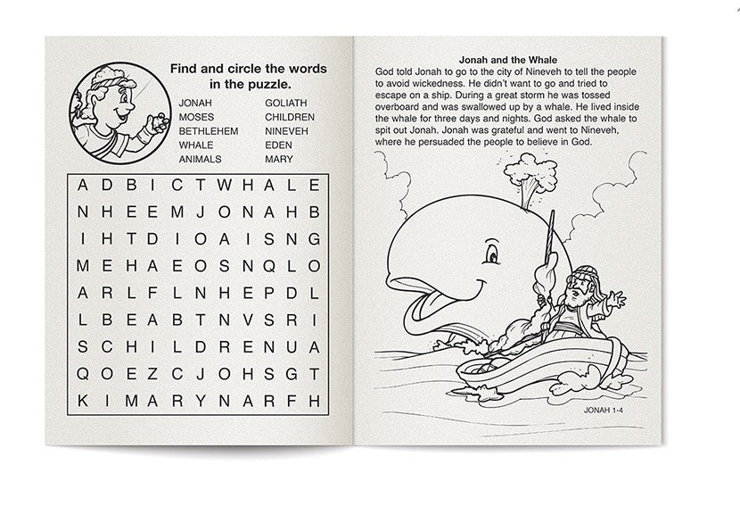 Introduce young children to Bible stories and simple verses that will stay with them for a lifetime. The coloring and activity books detail easy to grasp stories of the Bible through 16 pages of coloring, games, and other activities.