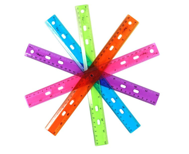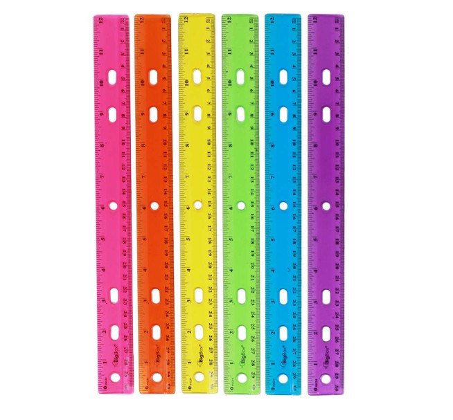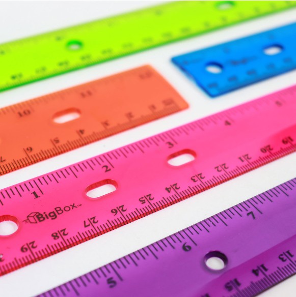 An essential part of any school kit, rulers are ideal for math or drawing projects. These rulers are twelve inches long and made of plastic with easy-to-read numbers imprinted on ruler. Each case contains 144 rulers in assorted colors. Save money with our exclusive BigBox line of school supplies.