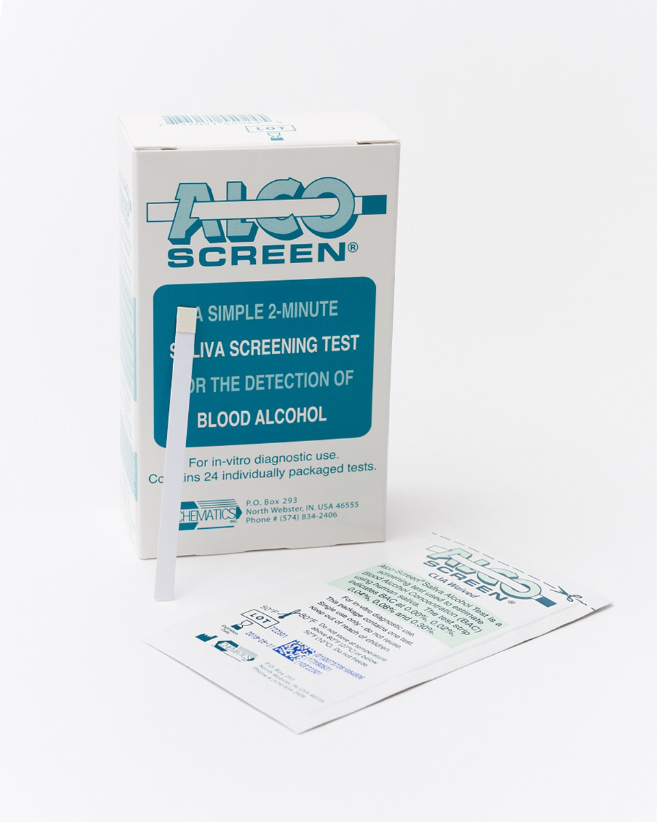 Alco-Screen is a rapid, highly sensitive method to detect the presence of alcohol in saliva and provide an approximation of relative blood alcohol concentration. Since it is well established that the concentration of alcohol in saliva is very close to that in the blood, saliva is the preferred specimen for alcohol testing, allowing for greater detection sensitivity than breath testing methods. Alco-Screen® is a very simple, one-step, 2 minute test requiring no instrumentation, calibration or special training to be used effectively, and is convenient enough to be used any time, any place.