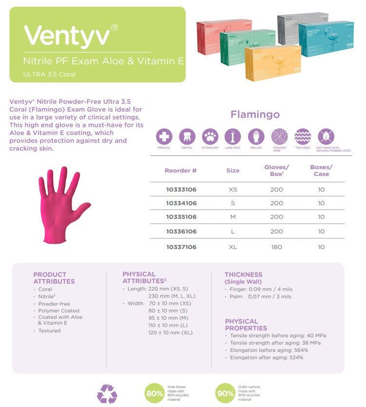 Ventyv, Nitrile Exam Gloves, with Aloe & Vitamin E, Textured, Beaded Cuff, Coral, Medium, Case (VNT 10335106)