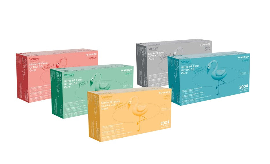 Ventyv, Nitrile Exam Gloves, with Aloe & Vitamin E, Textured, Beaded Cuff, Coral, Small, Case (VNT 10334106)