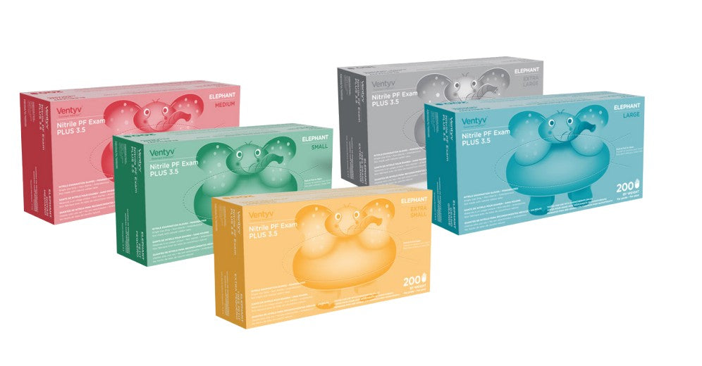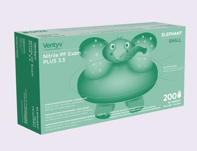 Ventyv Nitrile Powder-Free Plus 3.5 Violet Blue (Elephant) Exam Glove is ideal for use in a large variety of clinical settings. This high end glove is a favorite amongst healthcare workers for its strength and versatility.