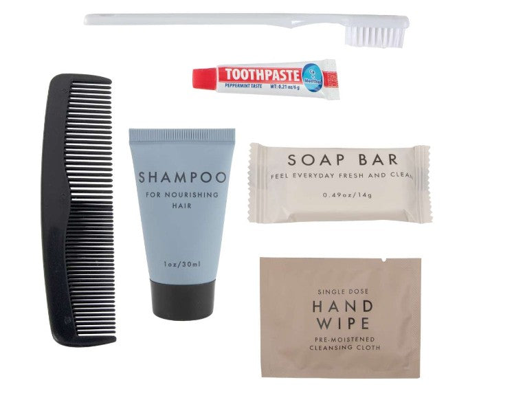 These 6-piece kits have everything one needs to maintain the necessary hygiene that protects our health. Every case has 100 kits.