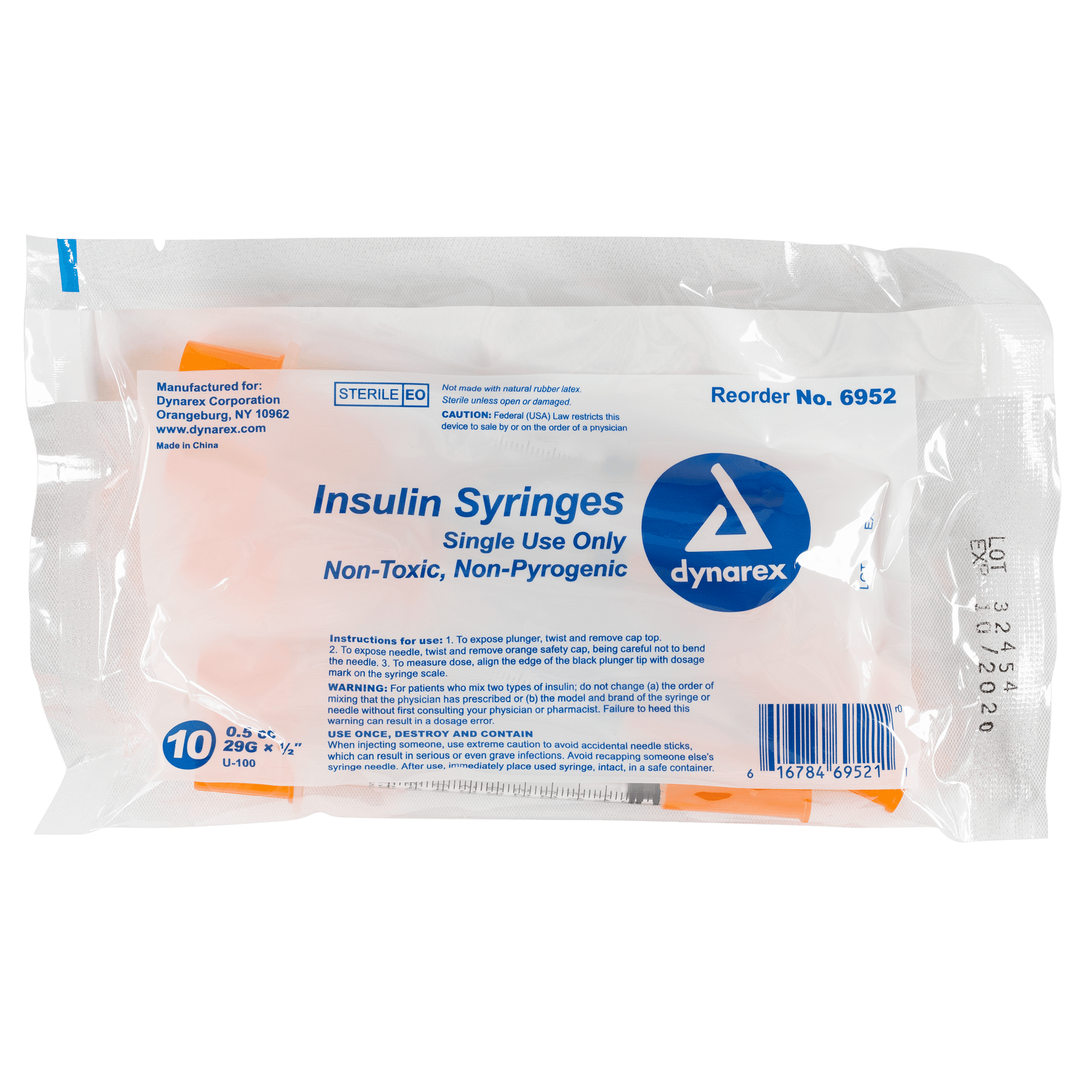 Insulin Syringe - Non-Toxic, 29G, 1/2" Needle, 0.5 cc, 5/100/cs