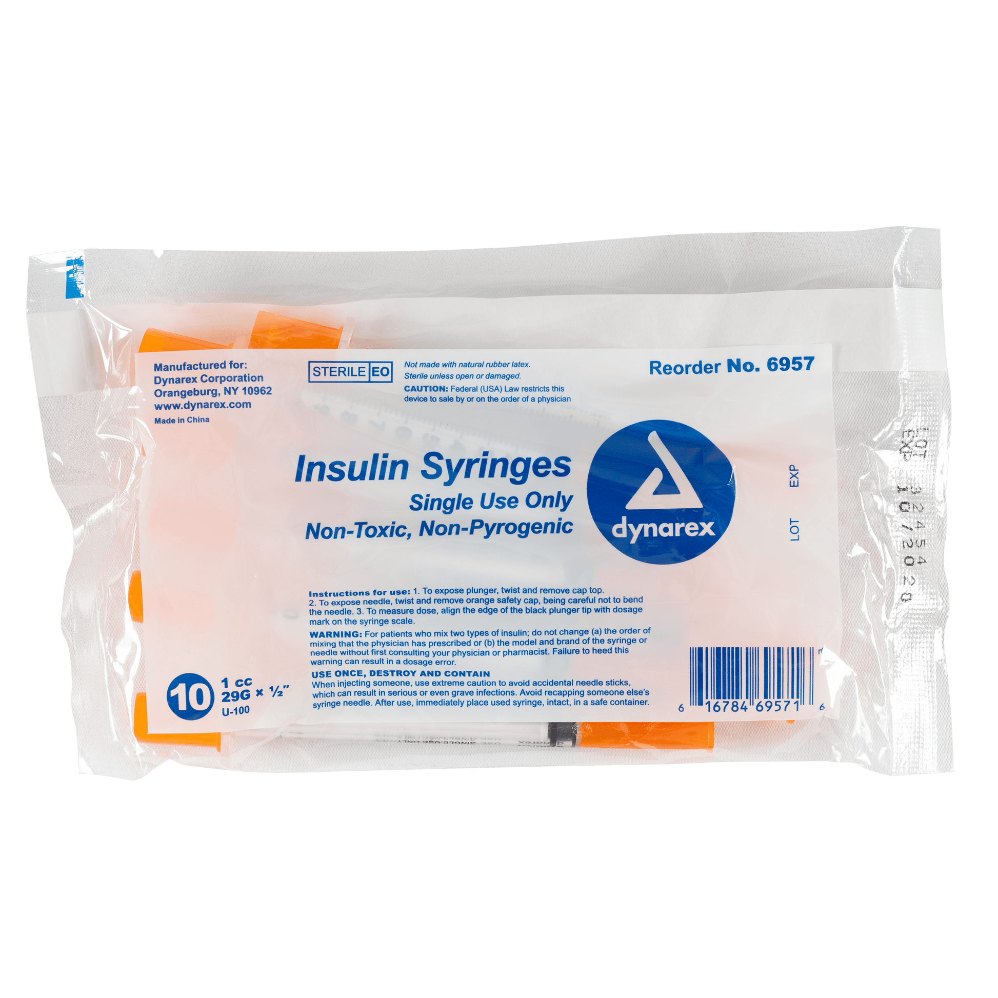 Insulin Syringe - Non-Toxic, 29G, 1/2" Needle, 1 cc, 5/100/cs