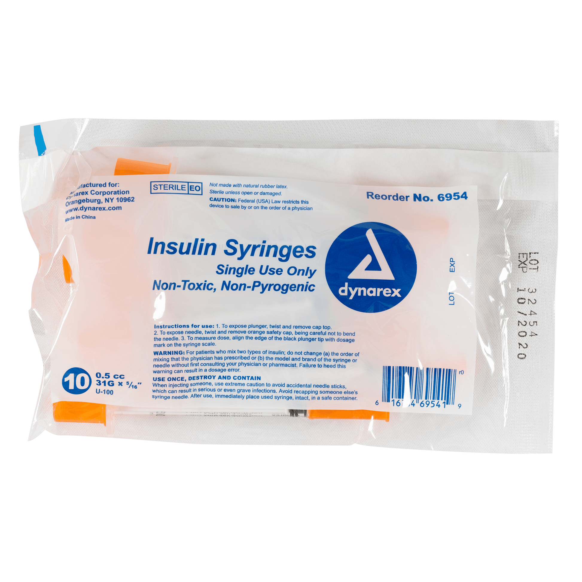 Insulin Syringe - Non-Toxic, 31G, 5/16" Needle, 0.5 cc, 5/100/cs