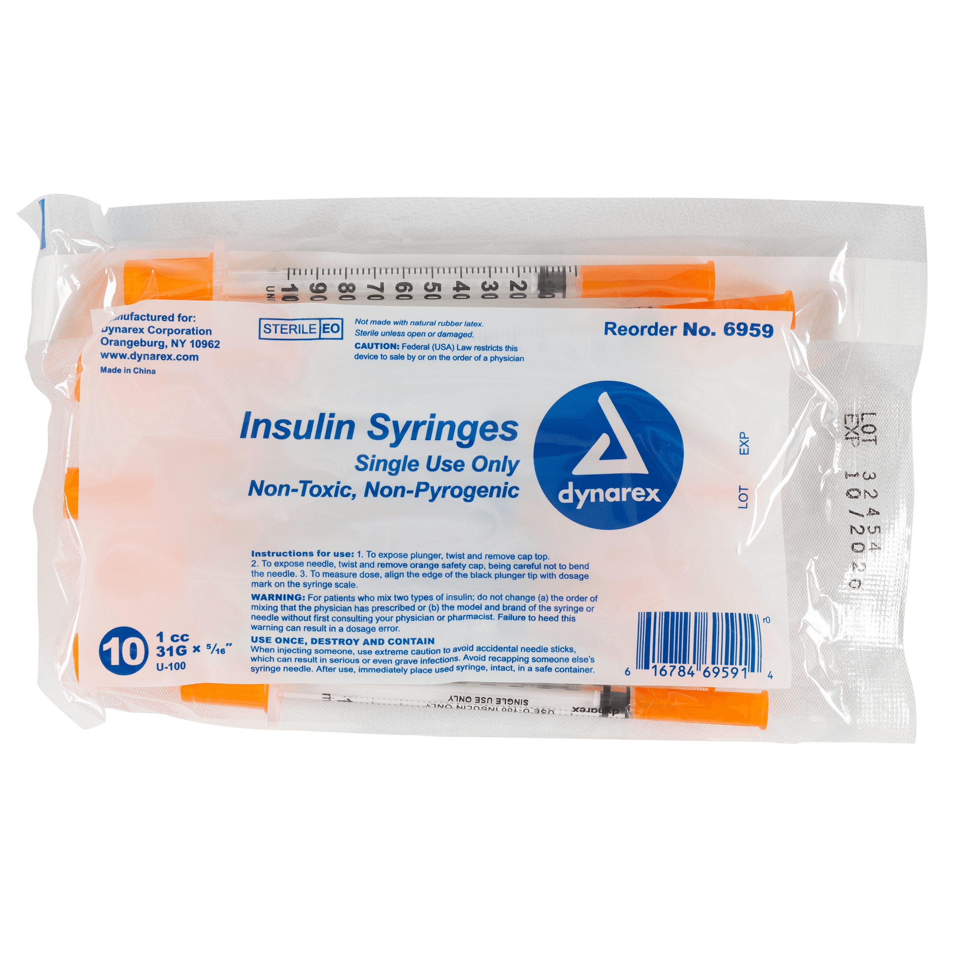 Insulin Syringe - Non-Toxic, 31G, 5/16" Needle, 1 cc, 5/100/cs