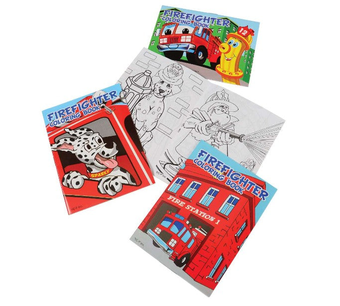 Fill your goodie bags with these assorted coloring books featuring cartoon firefighter scenes.