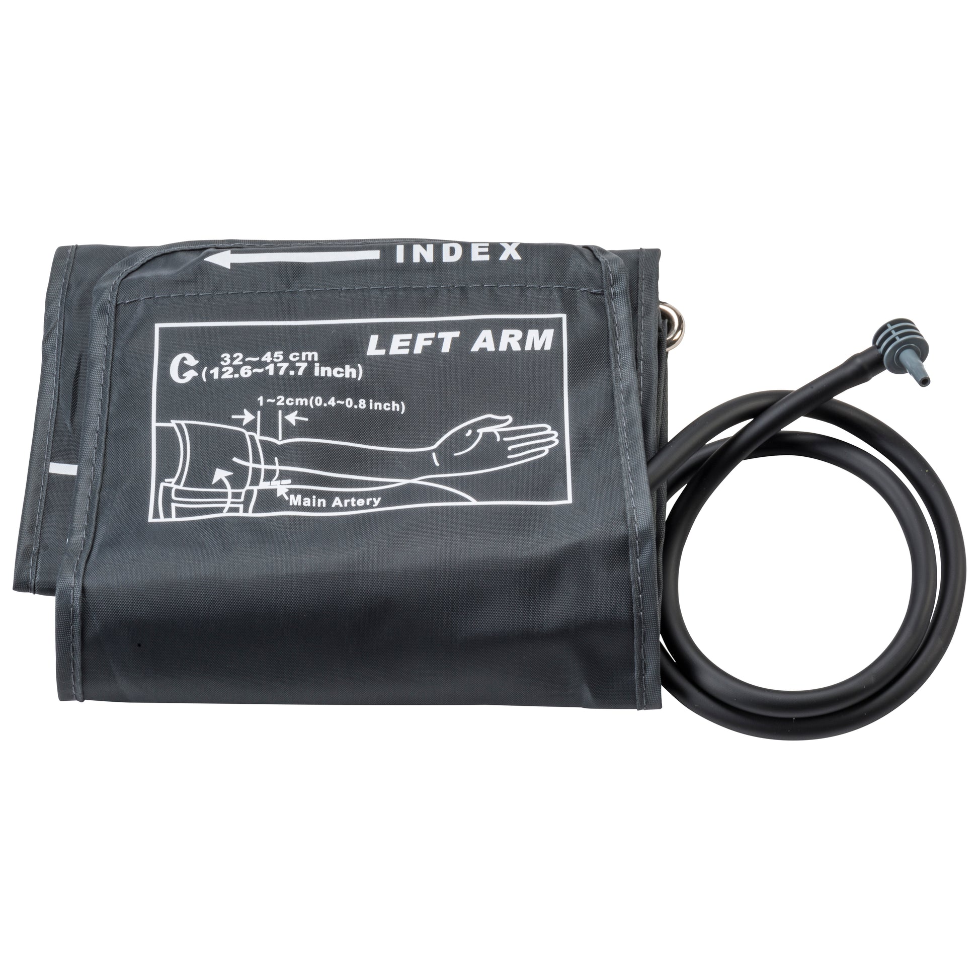 The Drive Medical Plus-Sized Bariatric Blood Pressure Cuff is specially sized to help users with a larger upper arm circumference receive accurate readings from most blood pressure monitors. The extra-large blood pressure cuff is designed for the designed for Drive's BP2200 and BP2400 blood pressure machines. It is made from comfortable, durable and easy-to-clean nylon and fits most arms 32 to 45 centimeters or 12.6 to 17.7 inches. Made by Drive Medical, a leading manufacturer of medical goods for more than 30 years, you can purchase with confidence.For Bariatric users|Easily connects to blood pressure monitors|Comfortable nylon|Extra large sizeActual Product Weight: 0.35 lbs; Overall Product Height: 0.5"; Overall Product Length: 17.5"; Overall Product Width: 6"; Primary Product Color: Black; Primary Product Material: NylonThe Plus-Sized Bariatric Blood Pressure Cuff allows for larger users to accurately take blood pressure readings on most monitors. The Blood Pressure Cuff is ready to go once installed on the unit. It is made from comfortable nylon and fits arm sizes up to 17 inches in diameter.For Bariatric users|Easily connects to blood pressure monitors|Comfortable nylon