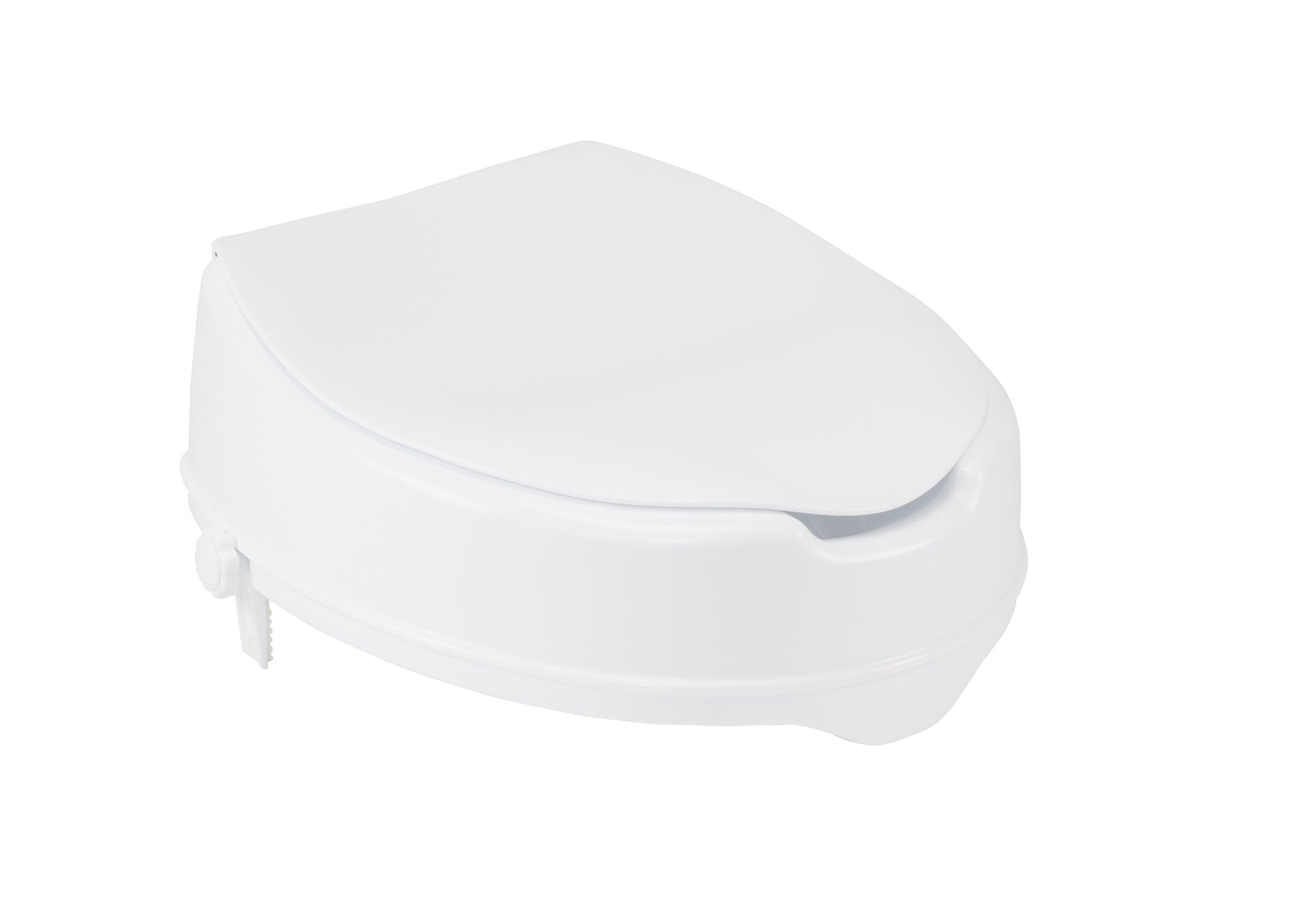 This raised toilet seat with lid by Drive Medical is designed to increase the height of your existing standard toilet seat. Available in a 4" elevated size providing maximum comfort and support. It easily attaches tool-free to your toilet and locks in place using two rear locks. A pair of hygiene cutouts provide convenience and allows the product to be cleaned. The elevated seat will help individuals who need a boost sitting down or standing up from the toilet. For consumers using a wheelchair this product allows for easy transfer to and from the raised toilet seat.Designed for individuals who have difficulty sitting down or standing up from the toilet|Heavy-duty molded plastic construction|Locking device with larger, heavy-duty "worm screw" and locking plate for a safe, secure fit|Lightweight and portable|Fits most standard toilets|No tools required for installation|Easy to cleanActual Product Weight: 3.5 lbs; Overall Product Height: 4"; Overall Product Length: 16"; Overall Product Width: 14"; Primary Product Color: White; Primary Product Material: Plastic; Product Weight Capacity: 400 lbs; Seat Depth: 16"; Seat Width: 14"Size: 4" HeightThis raised toilet seat with lid by Drive Medical is designed to increase the height of your existing standard toilet seat. Available in three elevated sizes; 2", 4", and 6" these models provide maximum comfort and support. It easily attaches tool-free to your toilet and locks in place using two rear locks. A pair of hygiene cutouts provide convenience and allows the product to be cleaned. The elevated seat will help individuals who need a boost sitting down or standing up from the toilet. For consumers using a wheelchair this product allows for easy transfer to and from the raised toilet seat.Designed for individuals who have difficulty sitting down or standing up from the toilet|Heavy-duty molded plastic construction|Locking device with larger, heavy-duty "worm screw" and locking plate for a safe, secure fit|Lightweight and portable|Fits most standard toilets|No tools required for installation|Easy to clean