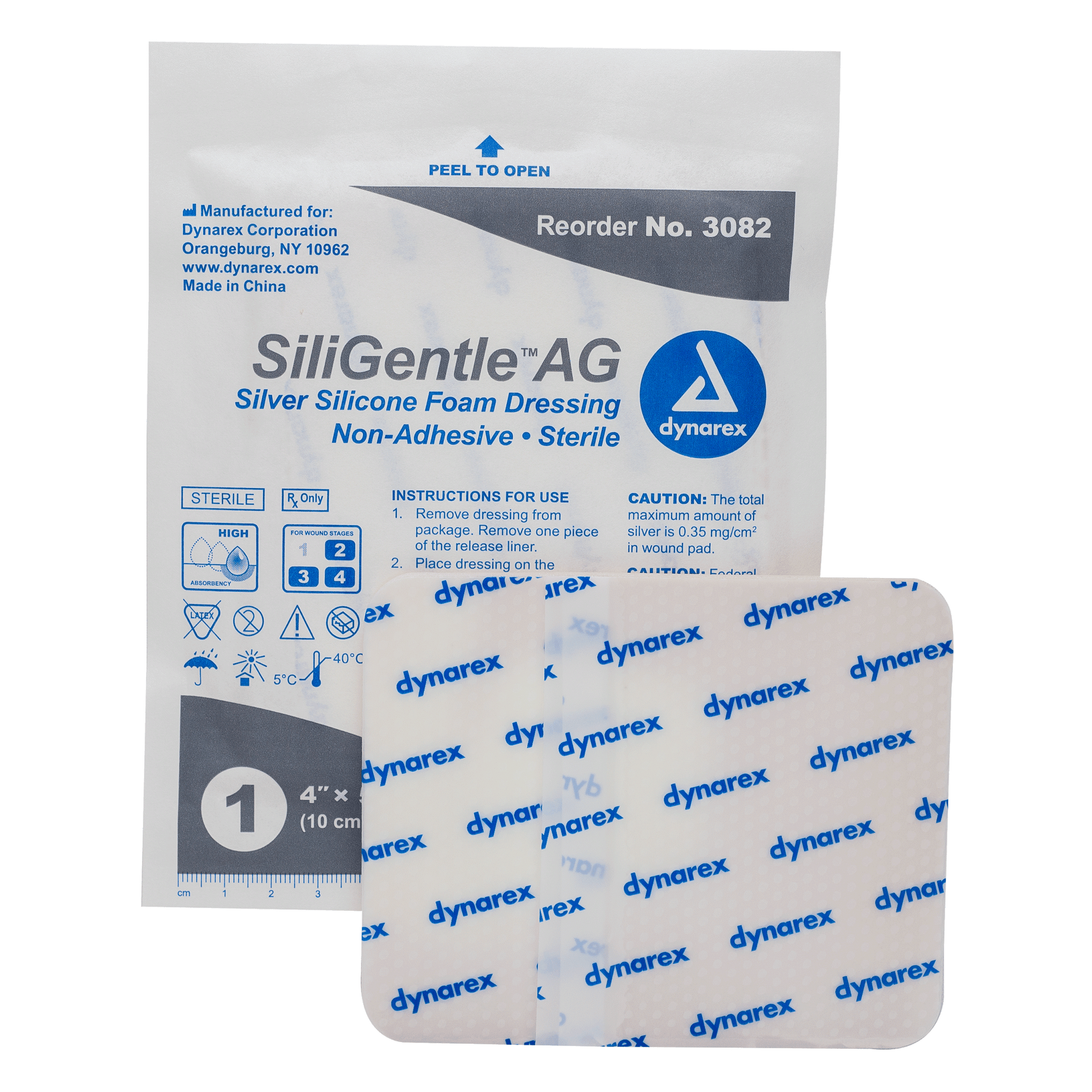 SiliGentle AG - Silver Silicone Foam Dressing, 4" x 5", 5/10/cs