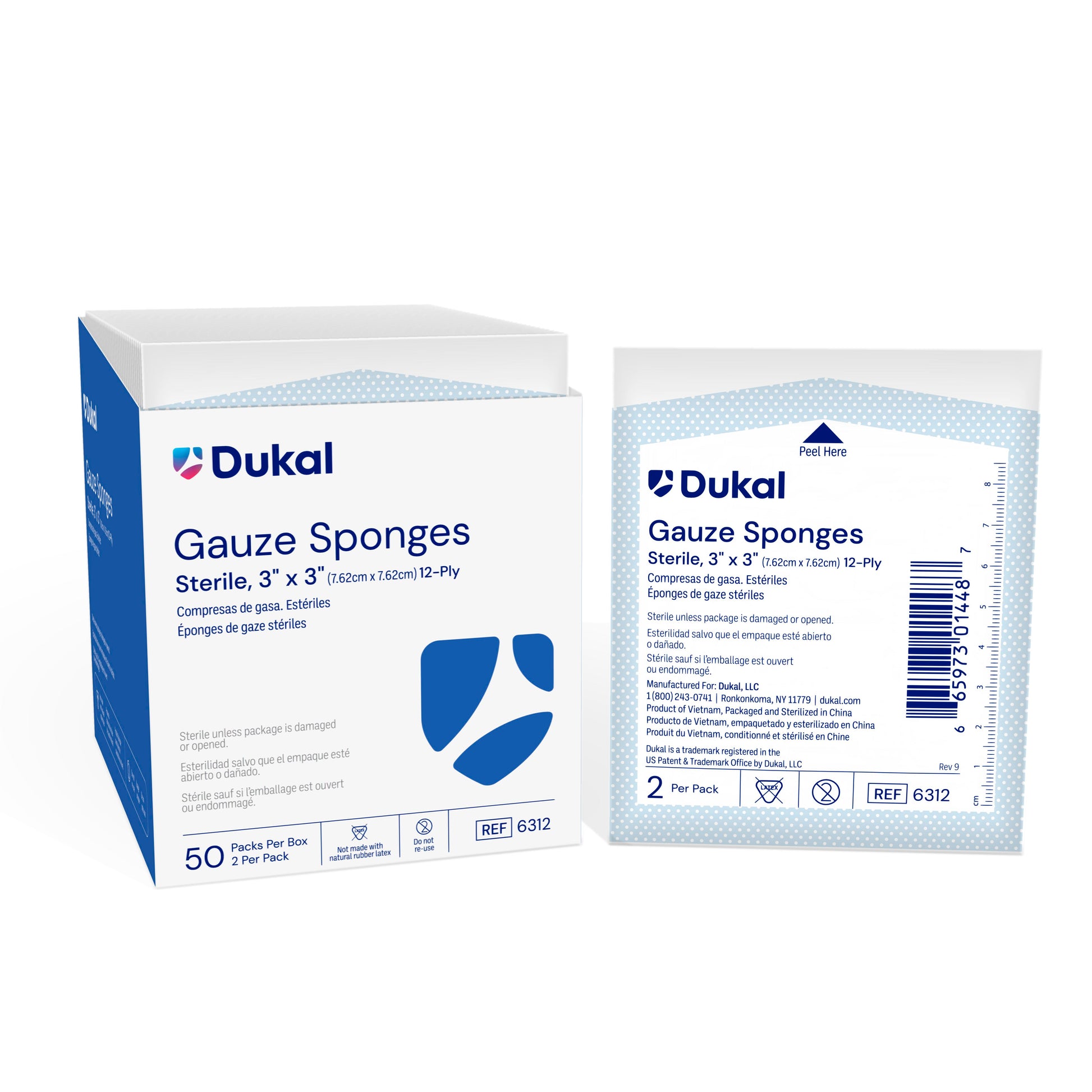 Dukal Gauze Sponge, 12-Ply, Sterile, 3 x 3, White (Pack of 2400)