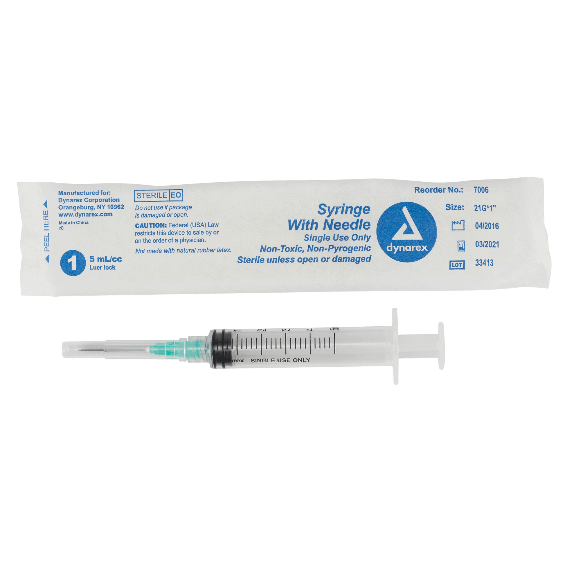 Syringe - Non-Safety with Needle - Luer Lock, 21G, 1" Needle, 5 cc, 4/100/cs