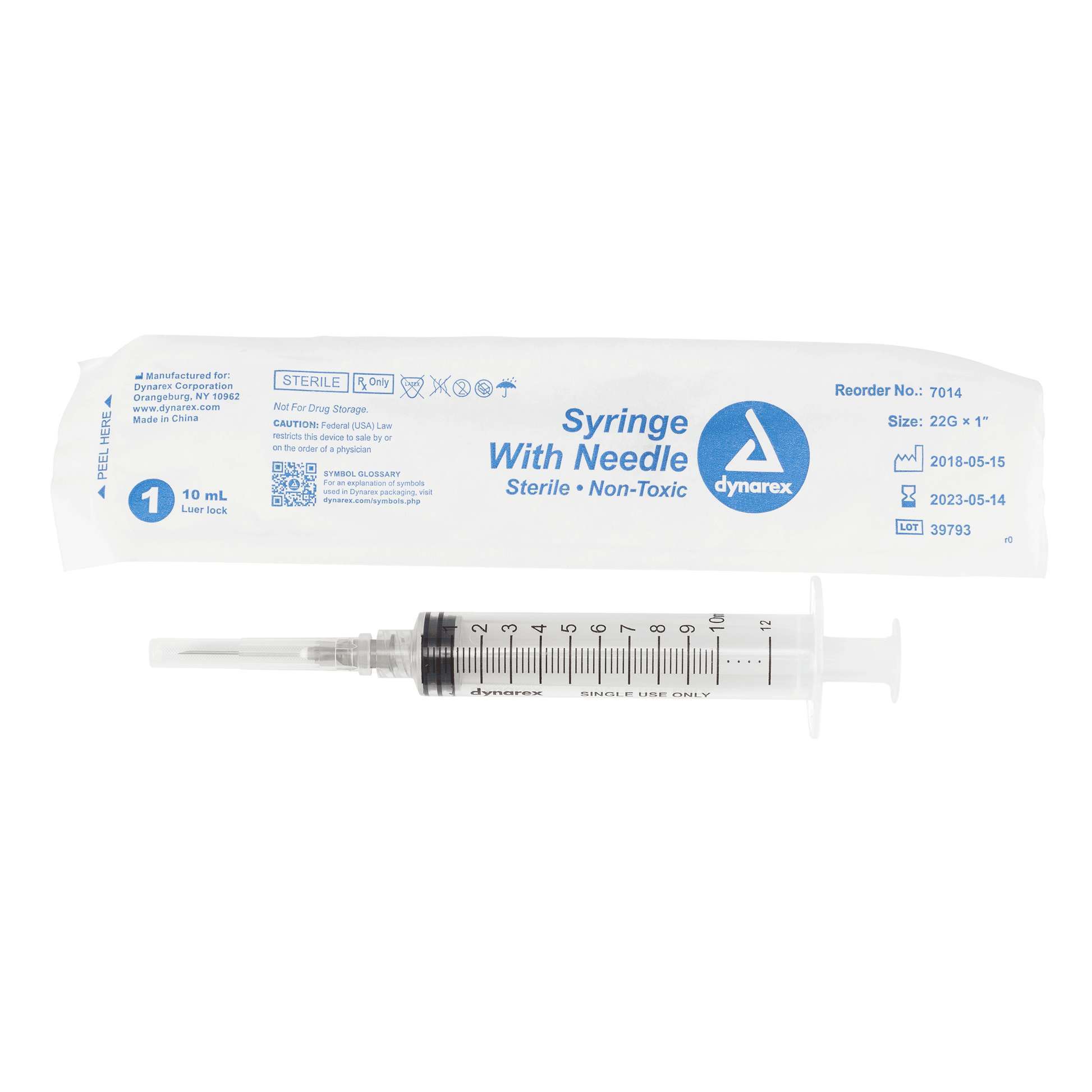 Syringe - Non-Safety with Needle - Luer Lock, 22G, 1" Needle, 10 cc, 4/100/cs
