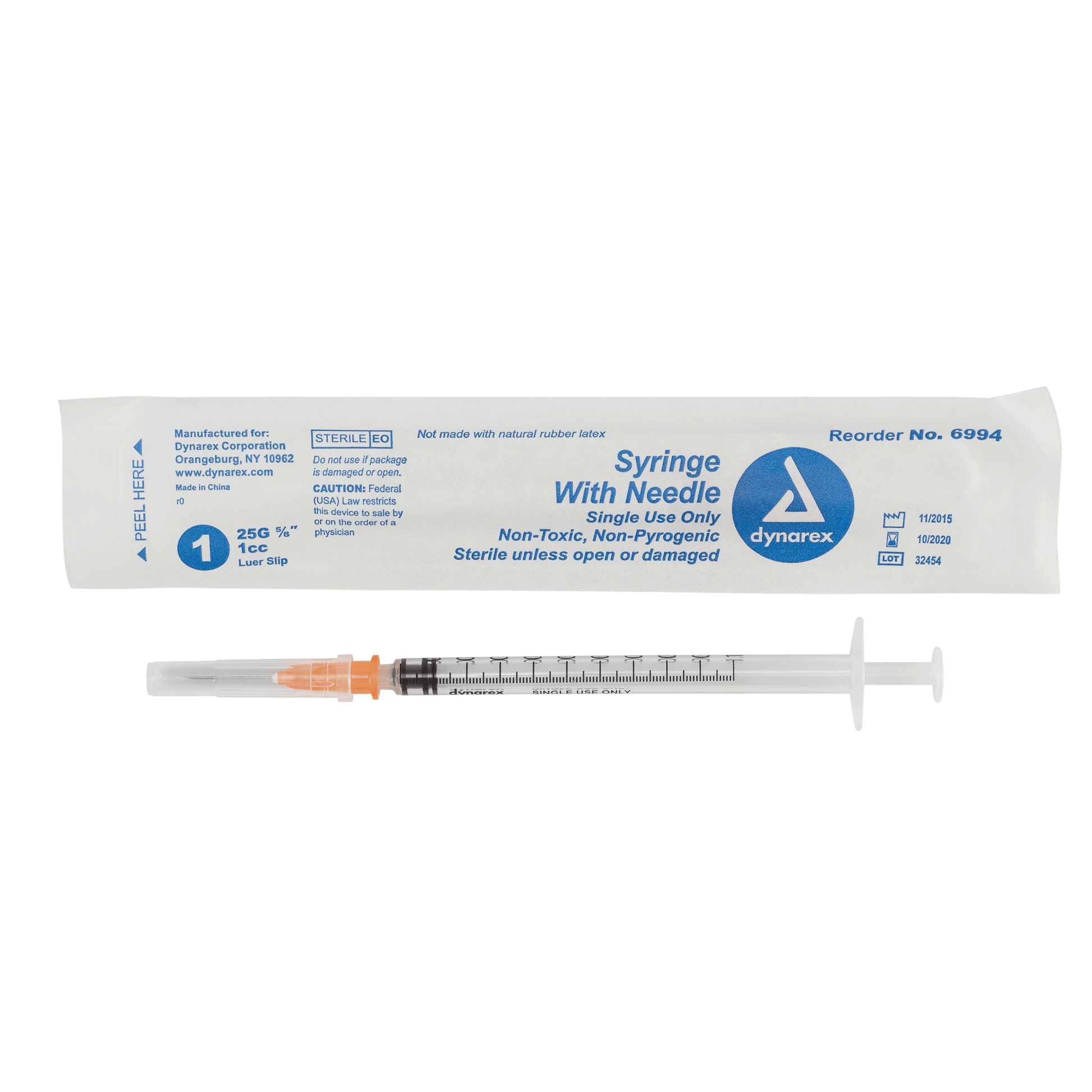 Syringe - Non-Safety with Needle - Luer slip, 25G, 5/8" Needle, 1 cc, 8/100/cs
